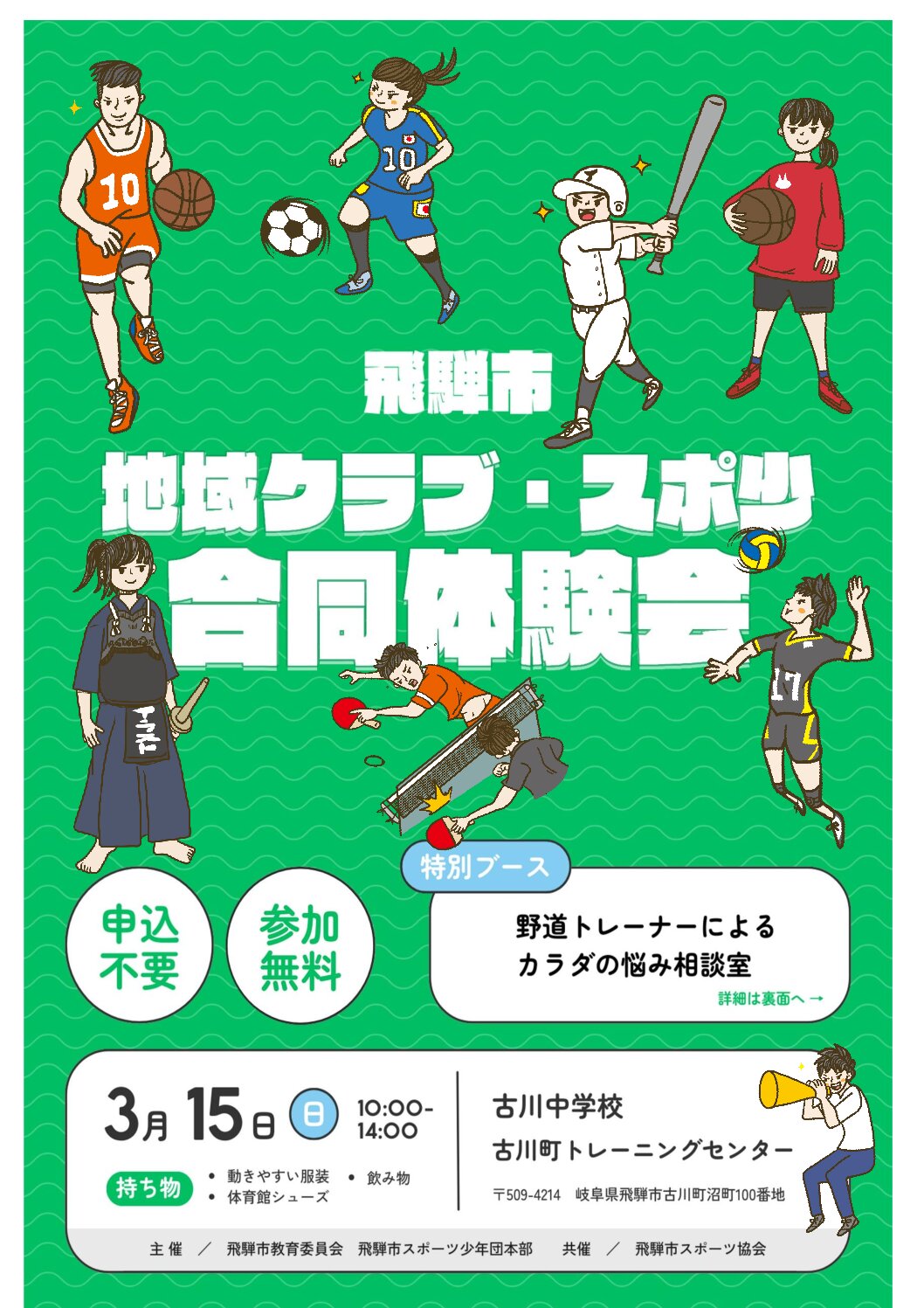 - 🆕3/15㈰飛騨市スポーツ少年団と地域クラブの合同体験会開催します!